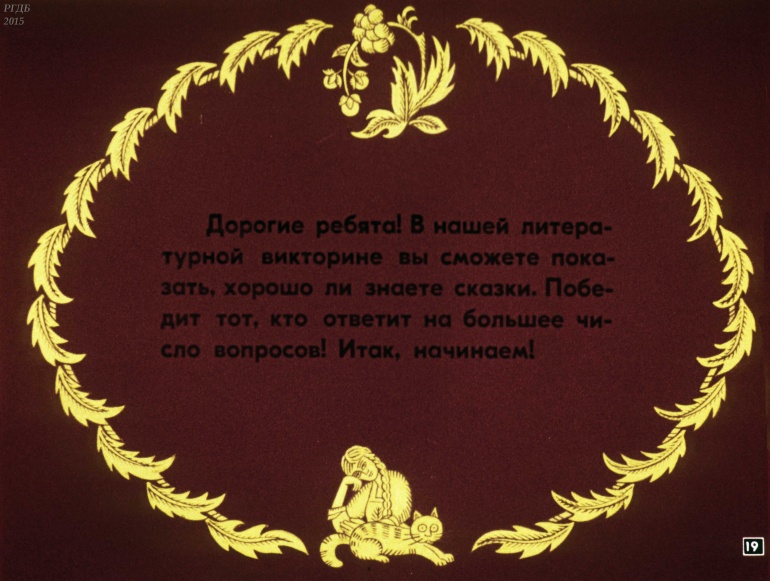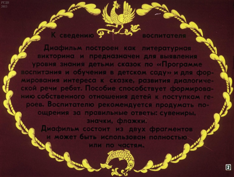 Назови сказку 0 Категория: ДиафильмыПросмотры: 1 135 Диафильм "Назови сказку".Студия "Диафильм" Госкино СССР, 1990 год. Д-129-90, цветной 0-30 копеек