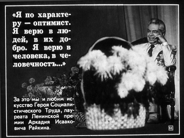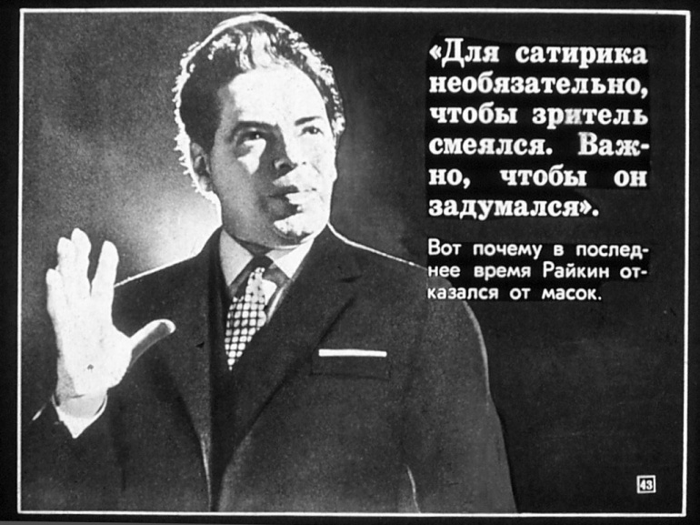 Аркадий Райкин 1 Категория: ДиафильмыПросмотры: 2 157 Диафильм "Аркадий Райкин"Студия "Диафильм", 1984 годД-195-84Его называют "человеком с тысячью лиц"...Сотни и сотни разных персонажей создал народный артист СССР Аркадий Исаакович Райкин за сорок пять лет работы на эстраде.