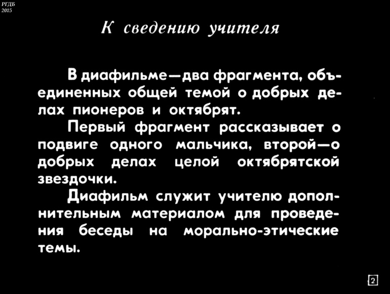 Наши добрые дела 1 Категория: ДиафильмыПросмотры: 927 Диафильм "Наши добрые дела".Студия "Диафильм" Госкино СССР, 1977 год. Д-308-77, цветной 0-30 копеек