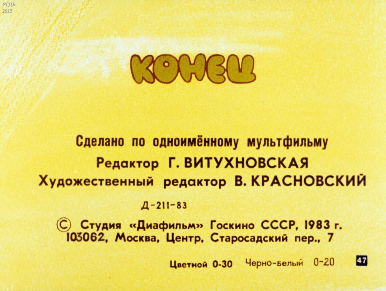 Ну, погоди! 2 28 Категория: ДиафильмыПросмотры: 4 238 Диафильм "Ну, погоди!". Выпуск 2Студия "Диафильм" Госкино СССР, 1983 год. Д-211-83, цветной 0-30 копеек