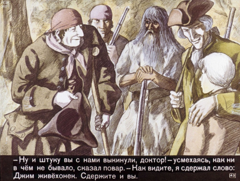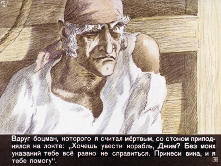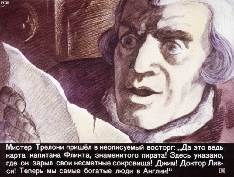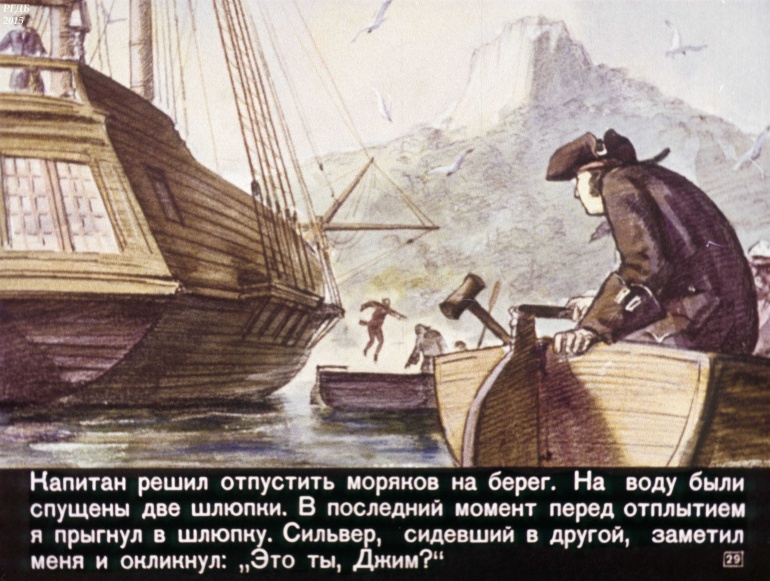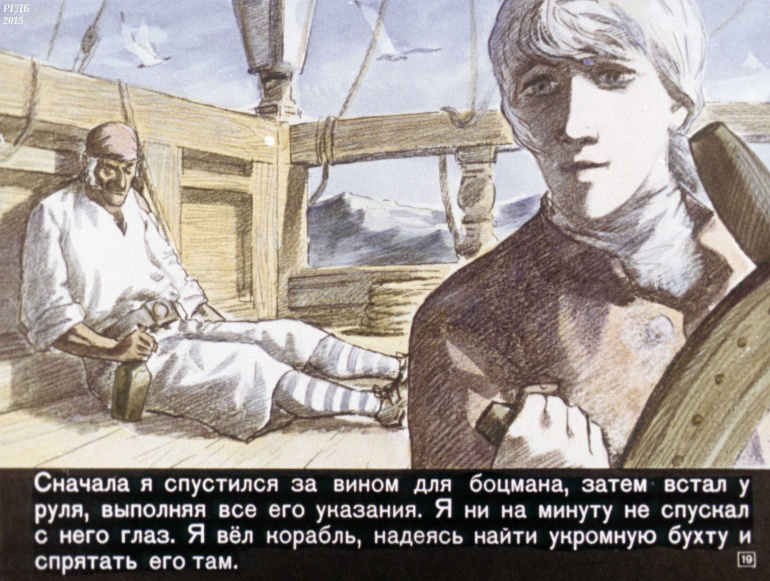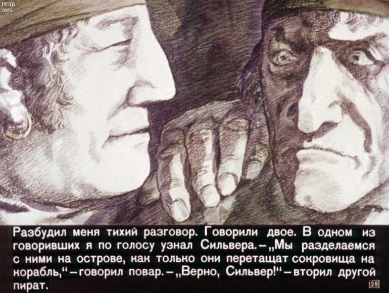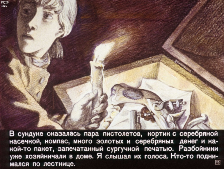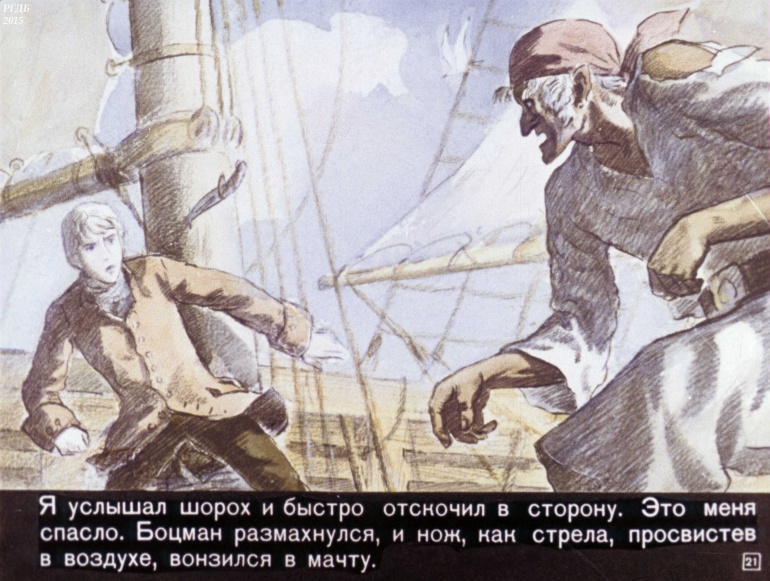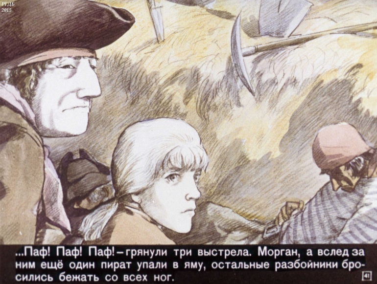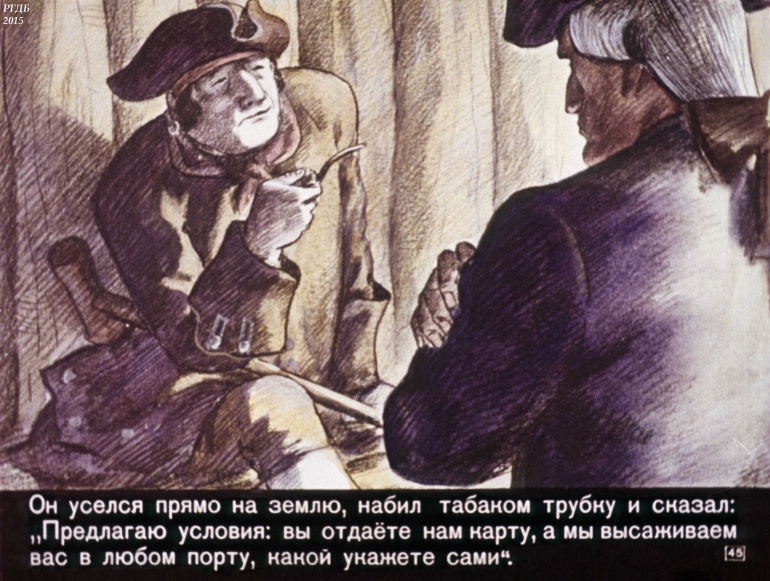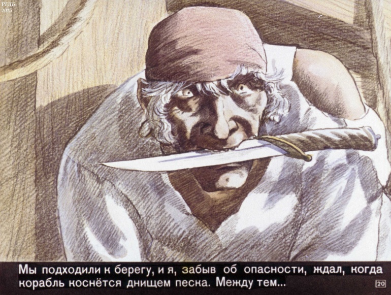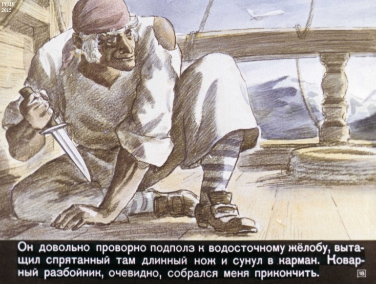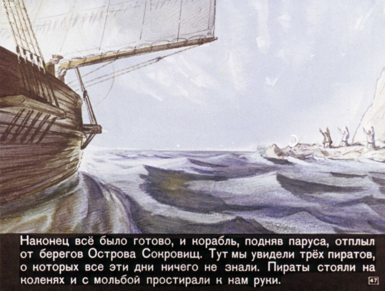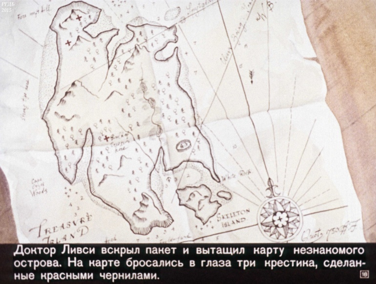 Остров сокровищ 1 Категория: ДиафильмыПросмотры: 1 531 Диафильм "Остров сокровищ" в двух частях. По роману Р. Л. СтивенсонаСтудия "Диафильм" Госкино СССР, 1971 год. Д-011-71, цветной 0-30 копеек