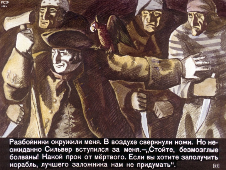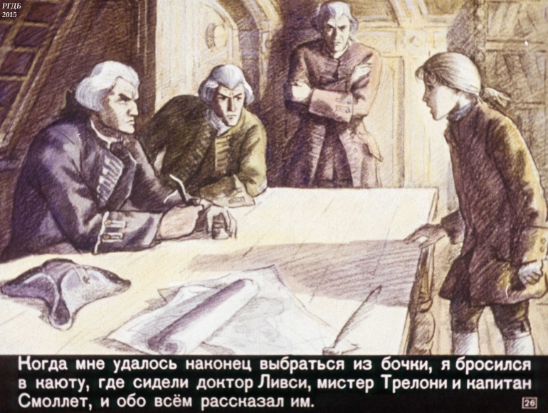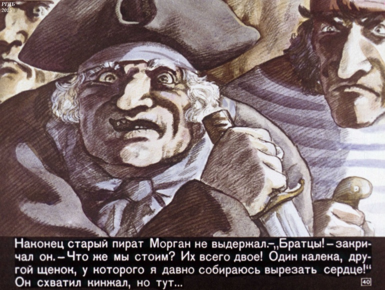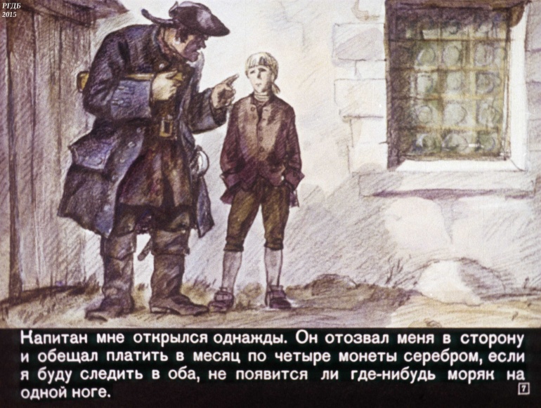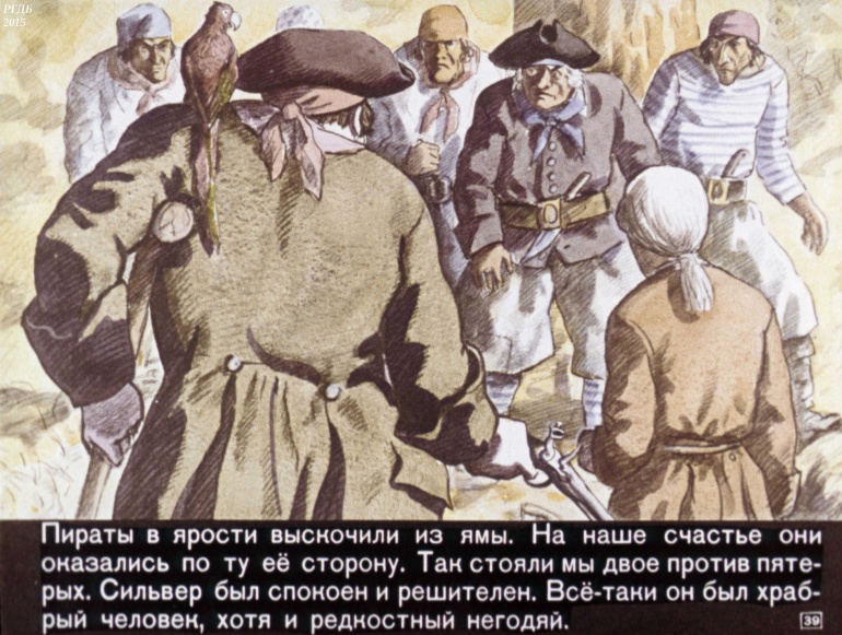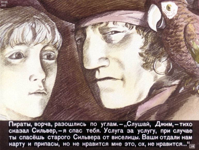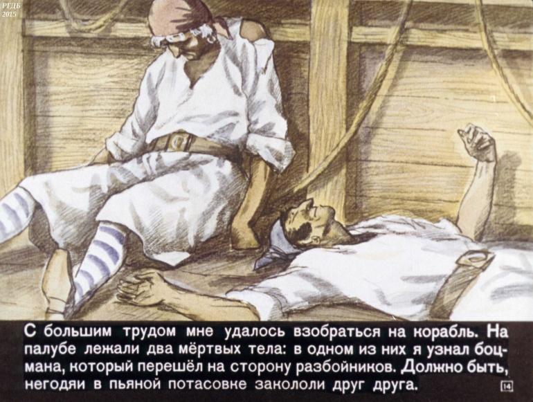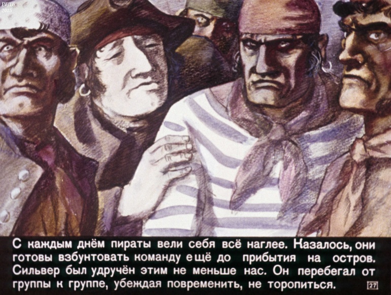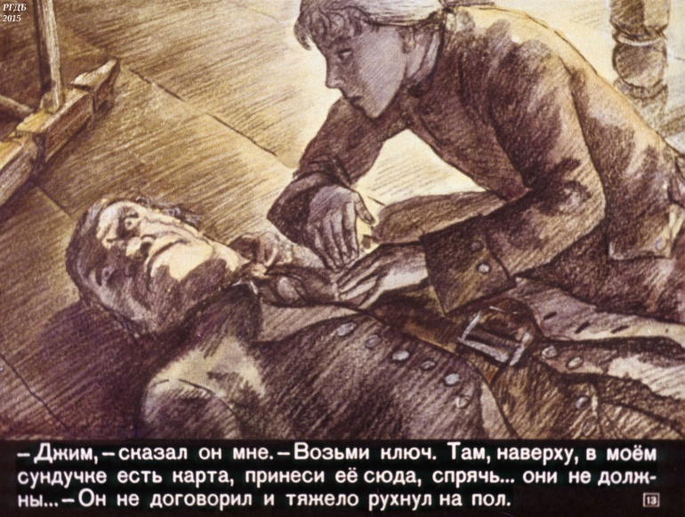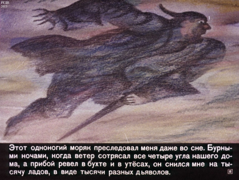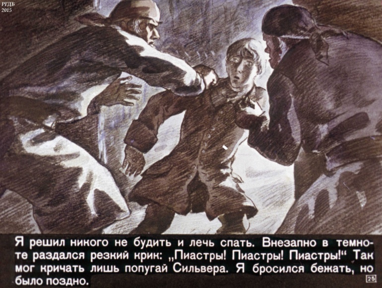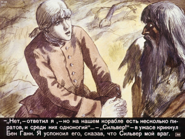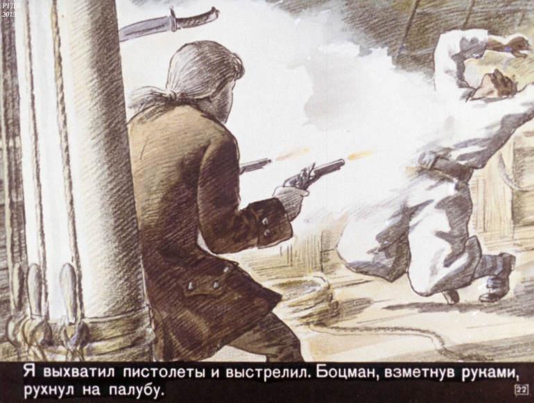 Остров сокровищ 1 Категория: ДиафильмыПросмотры: 1 531 Диафильм "Остров сокровищ" в двух частях. По роману Р. Л. СтивенсонаСтудия "Диафильм" Госкино СССР, 1971 год. Д-011-71, цветной 0-30 копеек