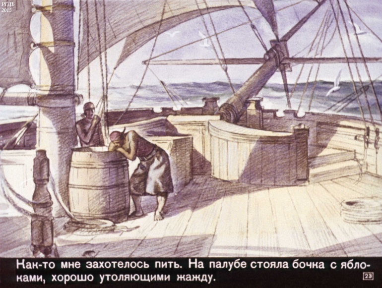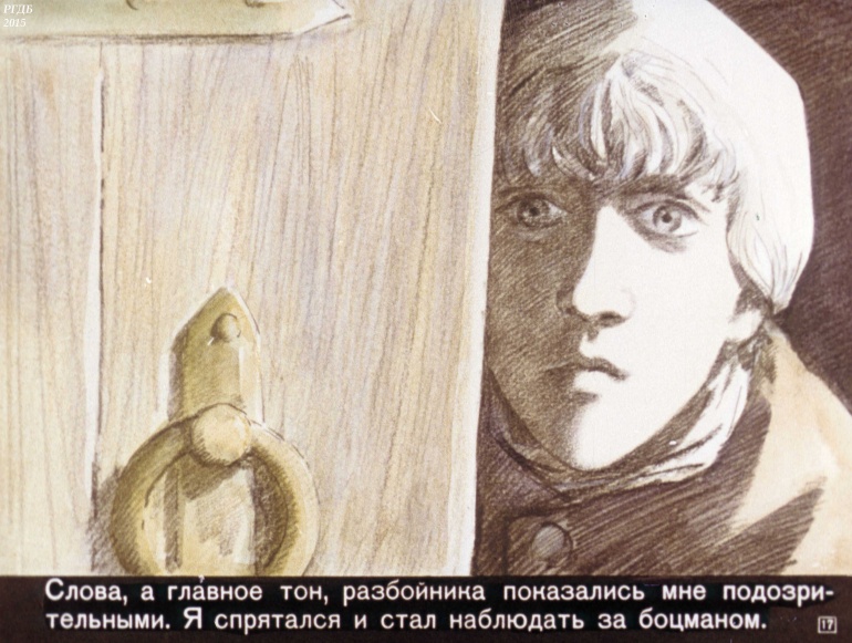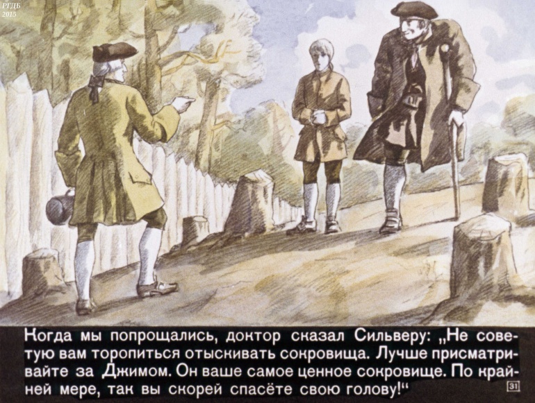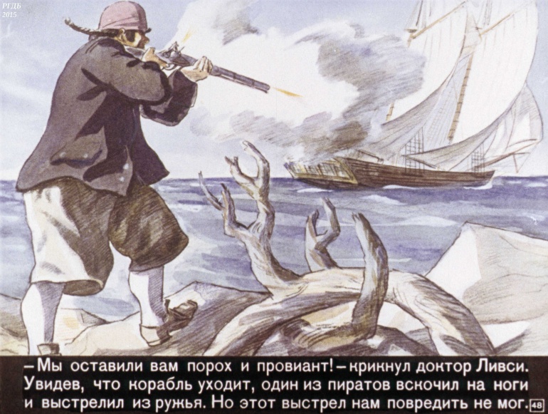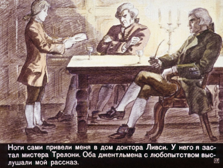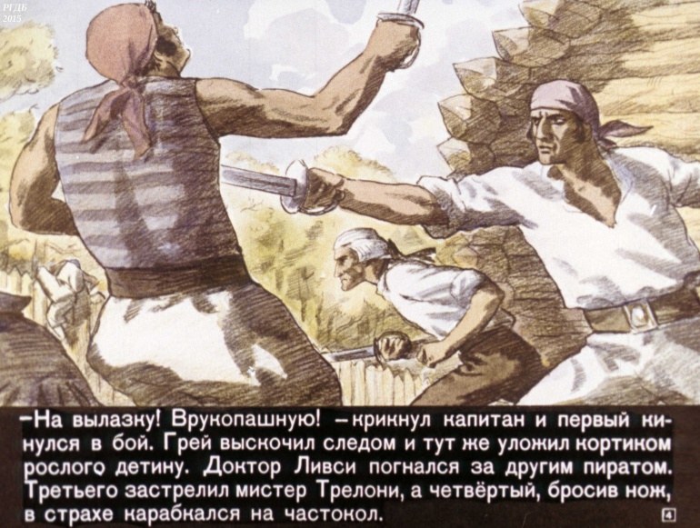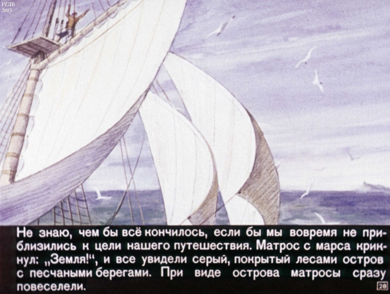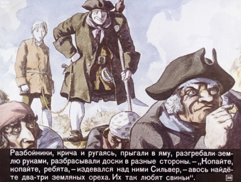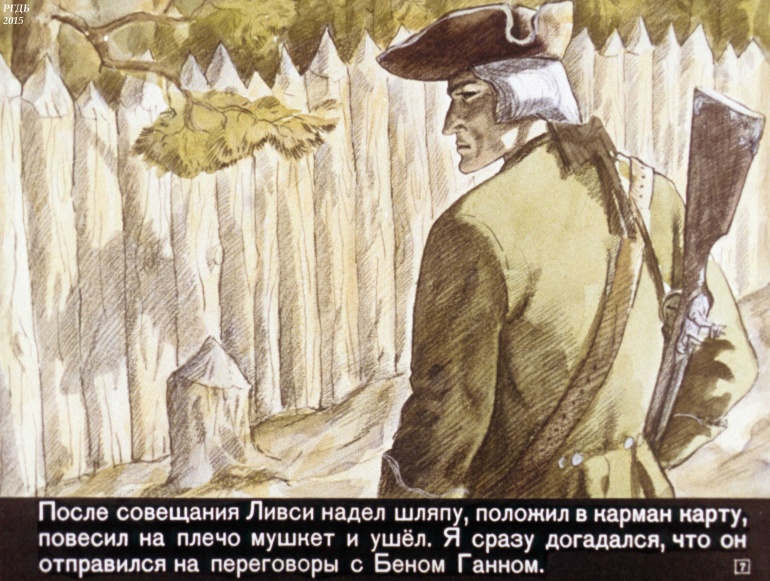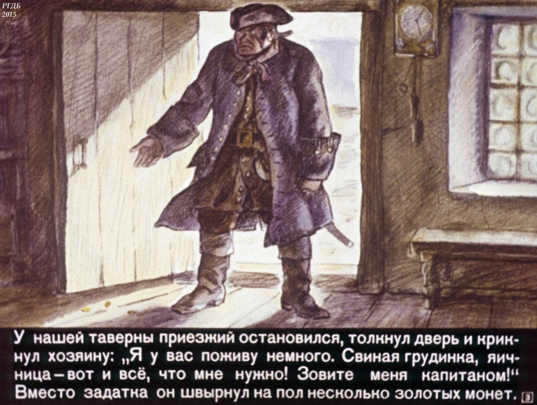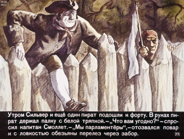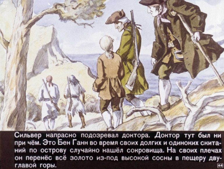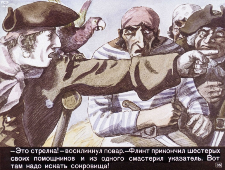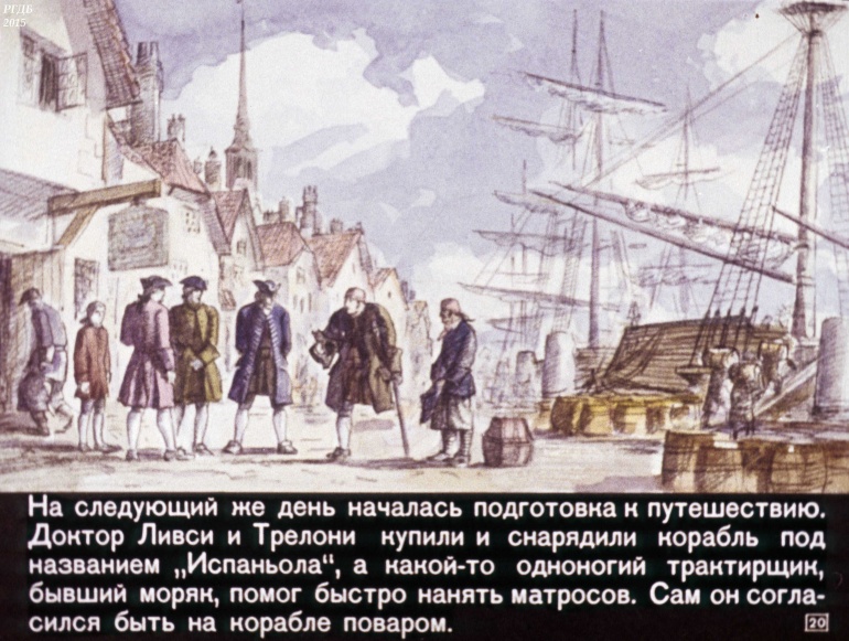 Остров сокровищ 1 Категория: ДиафильмыПросмотры: 1 531 Диафильм "Остров сокровищ" в двух частях. По роману Р. Л. СтивенсонаСтудия "Диафильм" Госкино СССР, 1971 год. Д-011-71, цветной 0-30 копеек