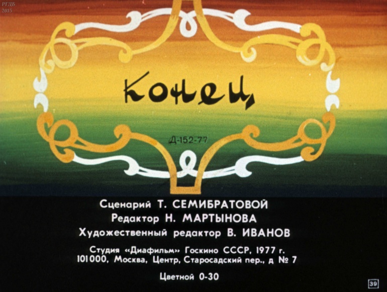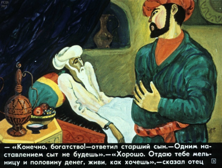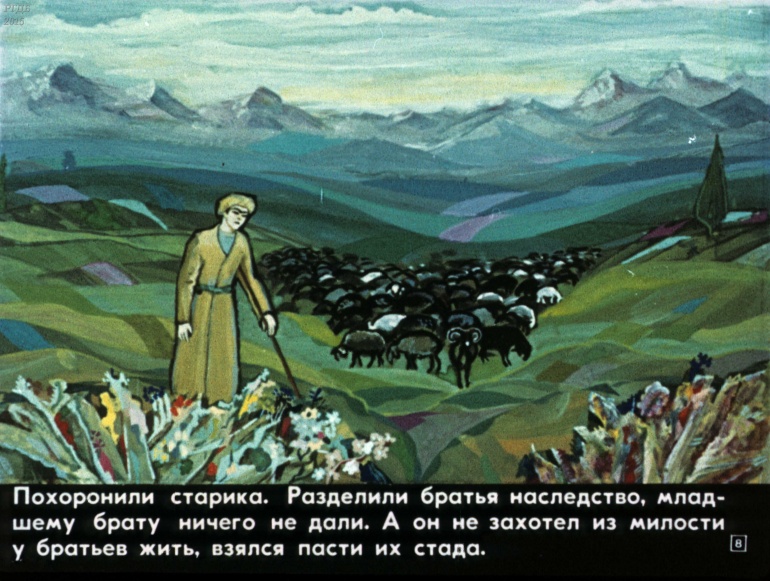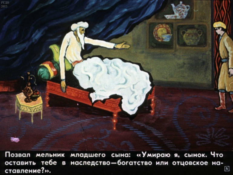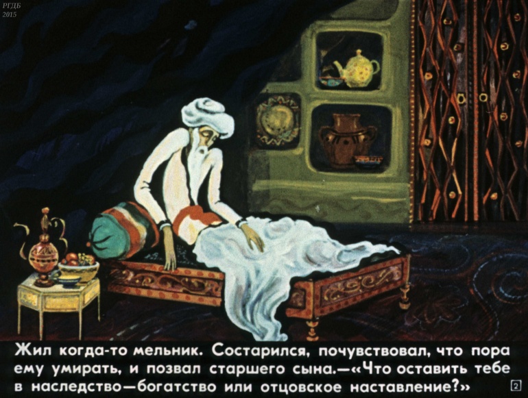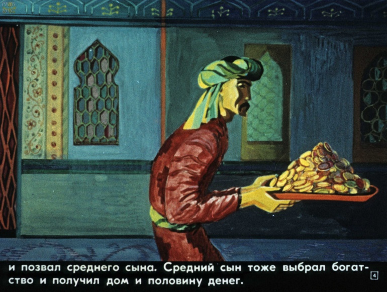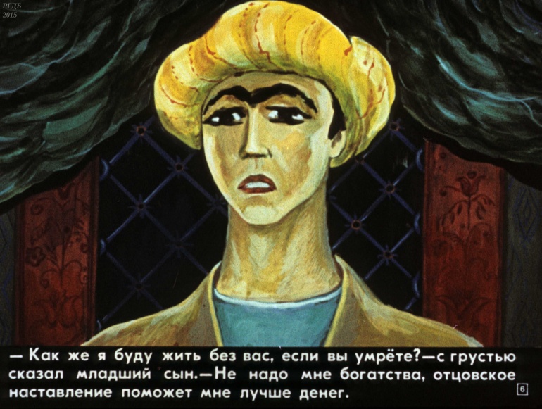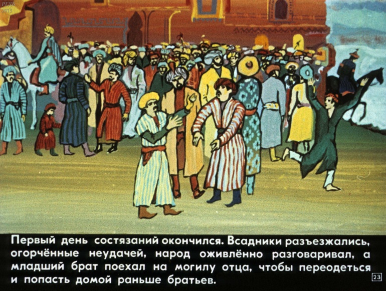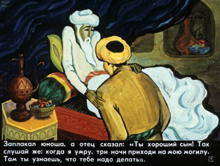Отцовское наставление 0 Категория: ДиафильмыПросмотры: 1 055 Диафильм "Отцовское наставление". Таджикская сказкаСтудия "Диафильм" Госкино СССР, 1977 год. Д-152-77, цветной 0-30 копеек