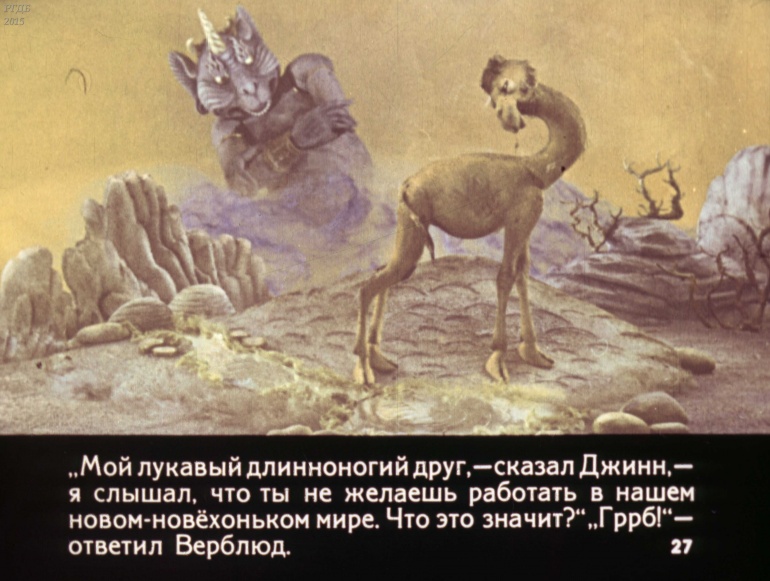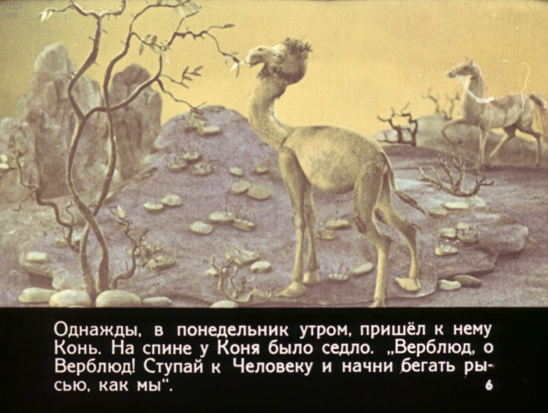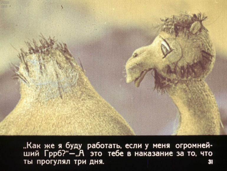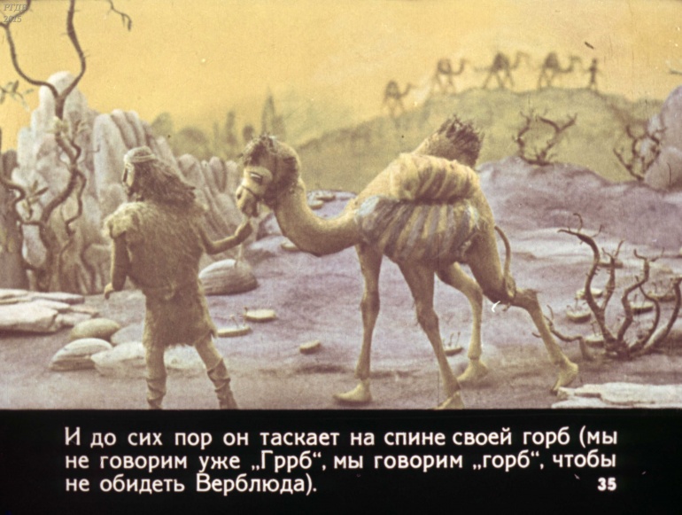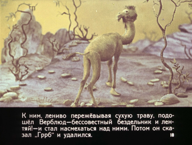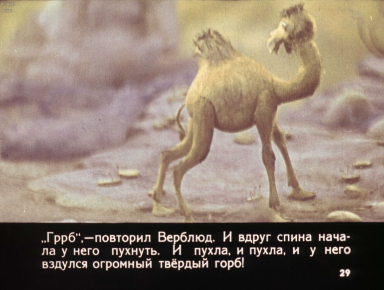 Отчего у верблюда горб 0 Категория: ДиафильмыПросмотры: 1 158 Р. Киплинг, Диафильм "Отчего у верблюда горб".Студия "Диафильм" Госкино СССР, 1980 год. Д-115-80, цветной 0-30 копеек