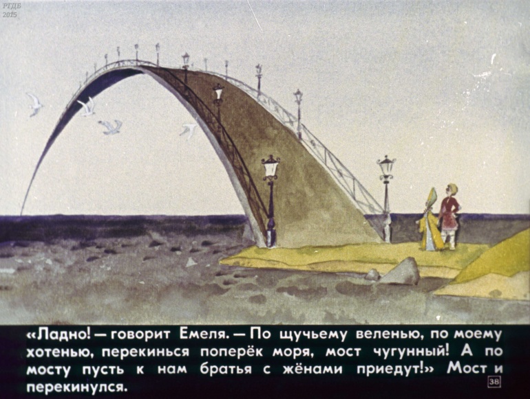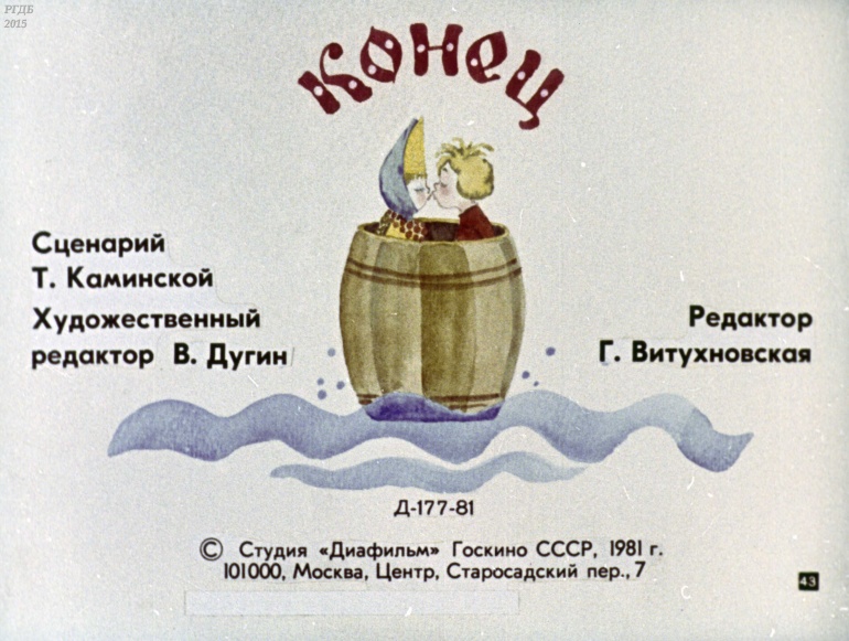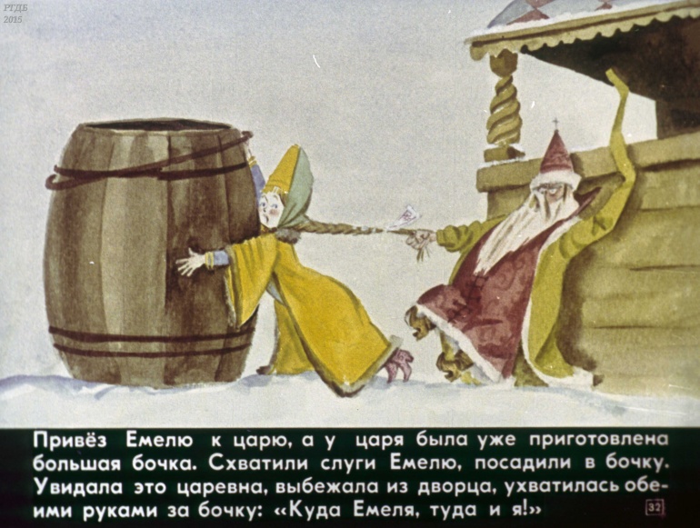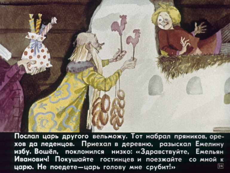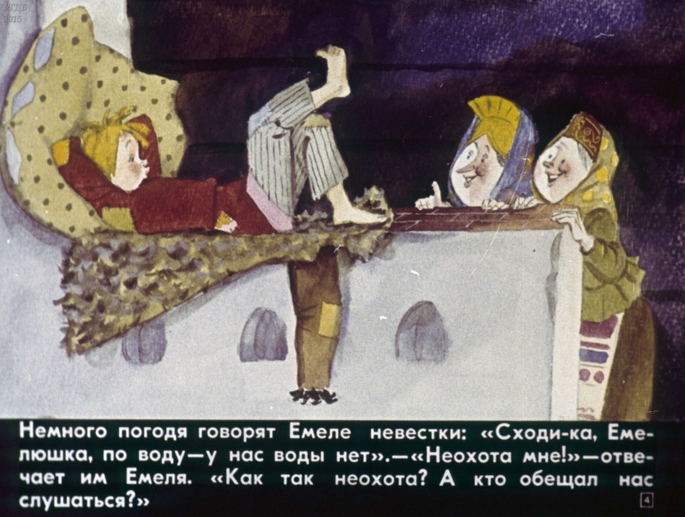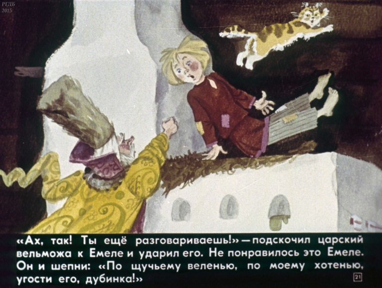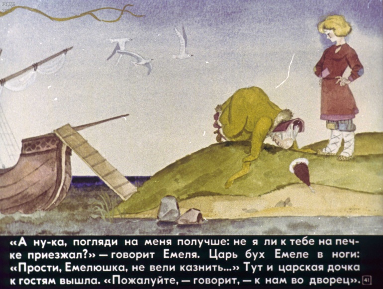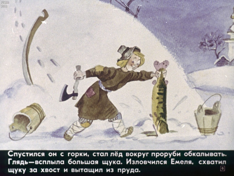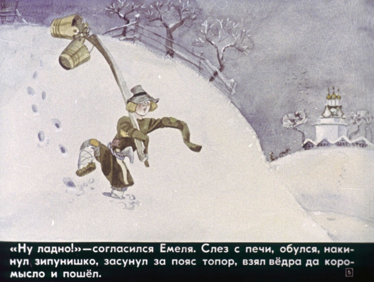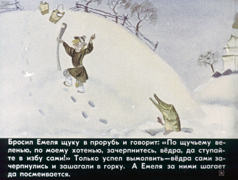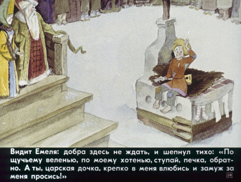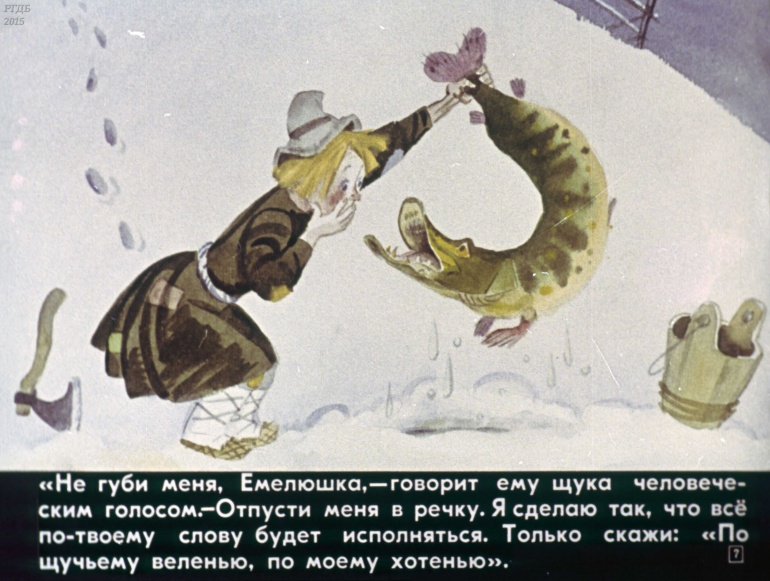 По щучьему велению 4 Категория: ДиафильмыПросмотры: 1 064 Диафильм "По щучьему велению". Русская народная сказкаСтудия "Диафильм" Госкино СССР, 1981 год. Д-177-81, цветной 0-30 копеек