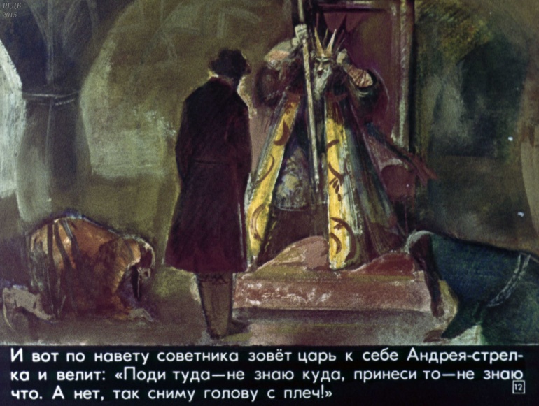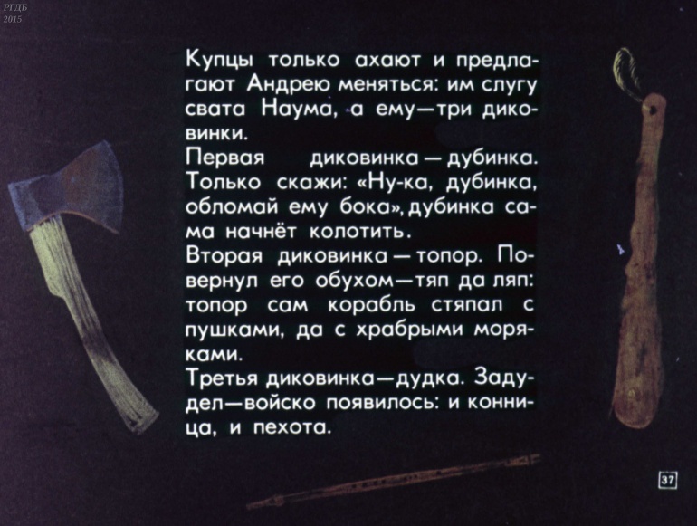 Поди туда - не знаю куда 0 Категория: ДиафильмыПросмотры: 898 Диафильм "Поди туда - не знаю куда".Русская народная сказкаСтудия "Диафильм" Госкино СССР, 1980 год. Д-156-80, цветной 0-30 копеек