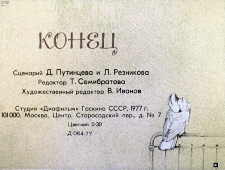 Попка-нянька 1 Категория: ДиафильмыПросмотры: 830 С. Радзиевская. Диафильм "Попка-нянька".Студия "Диафильм" Госкино СССР, 1977 год. Д-064-77, цветной 0-30 копеек