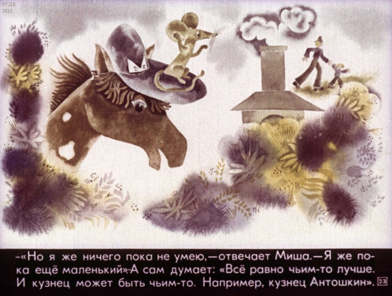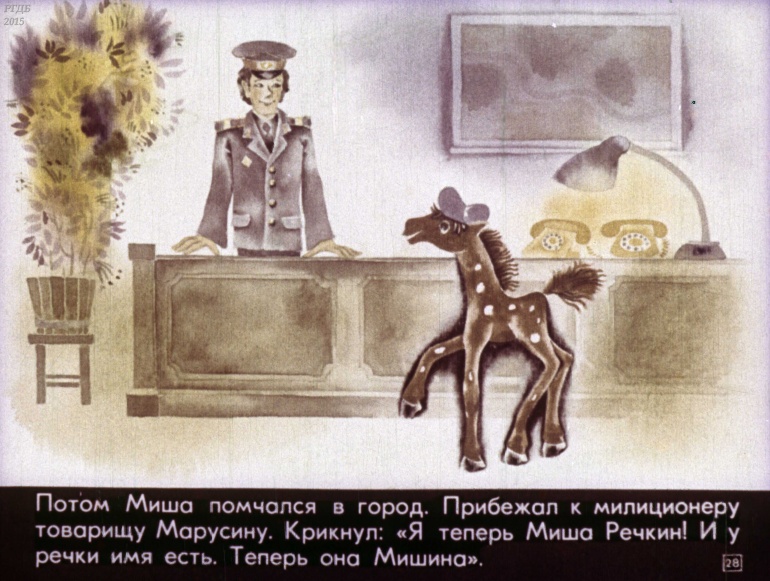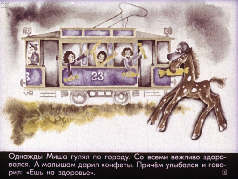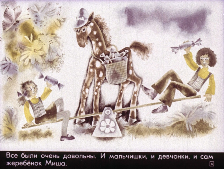 Про жеребенка Мишу 0 Категория: ДиафильмыПросмотры: 804 Радий Погодин. Диафильм "Про жеребенка Мишу".Студия "Диафильм" Госкино СССР, 1979 год. Д-098-79, цветной 0-30 копеек