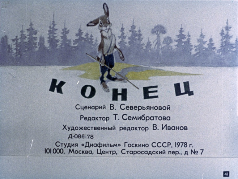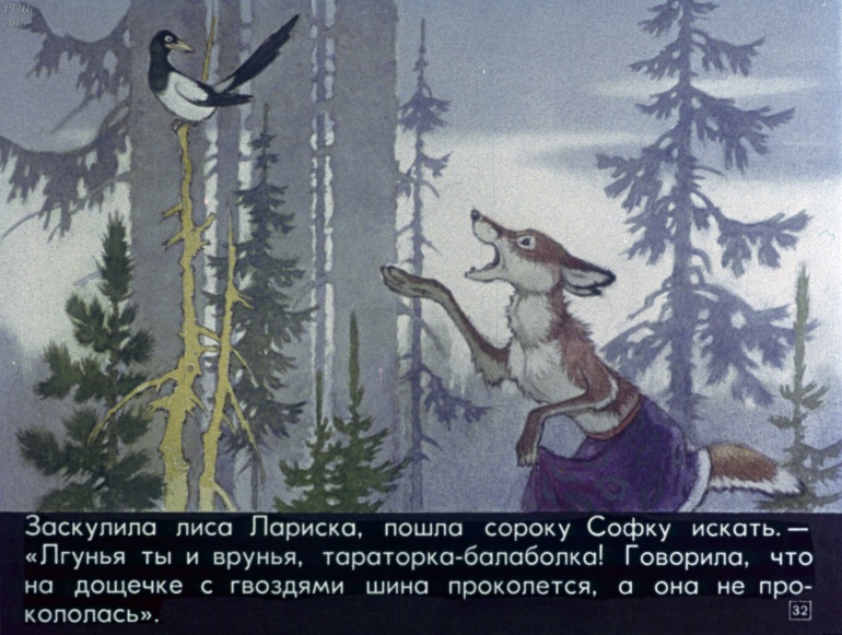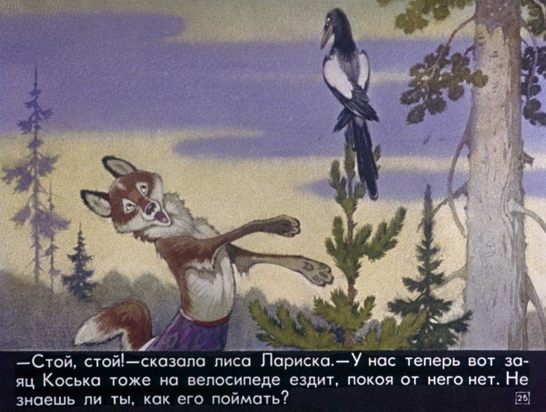 Про лису Лариску и зайца Коську 1 Категория: ДиафильмыПросмотры: 1 028 Николай Грибачёв. Диафильм "Про лису Лариску и зайца Коську".Студия "Диафильм" Госкино СССР, 1978 год. Д-086-78, цветной 0-30 копеек
