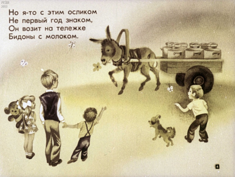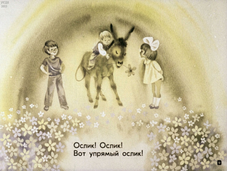 Про ослика 0 Категория: ДиафильмыПросмотры: 800 Я. Аким. Диафильм "Про ослика".Студия "Диафильм" Госкино СССР, 1978 год. Д-088-78, цветной 0-30 копеек