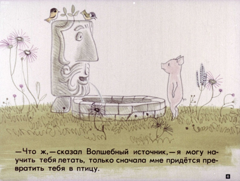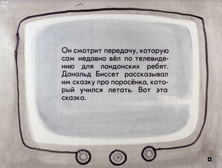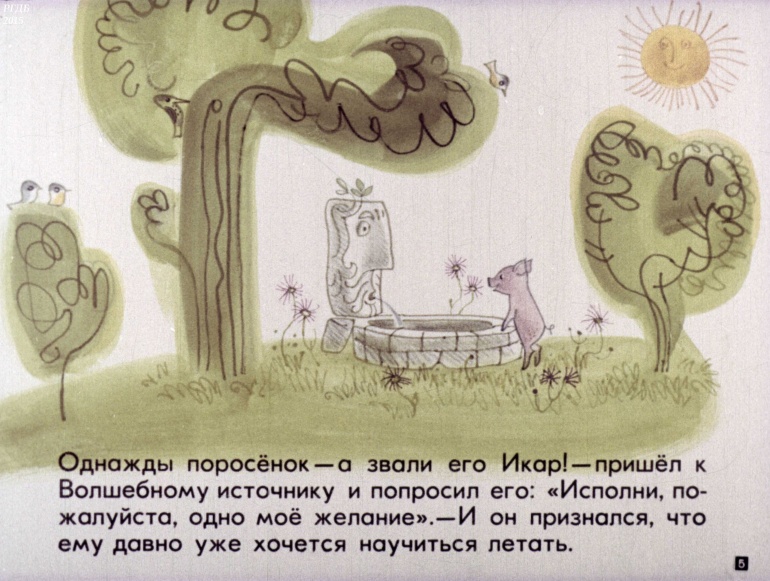 Про поросенка, который учился летать 0 Категория: ДиафильмыПросмотры: 1 078 Д. Биссет. Диафильм "Про поросенка, который учился летать".Студия "Диафильм" Госкино СССР, 1976 год. Д-065-76, цветной 0-30 копеек