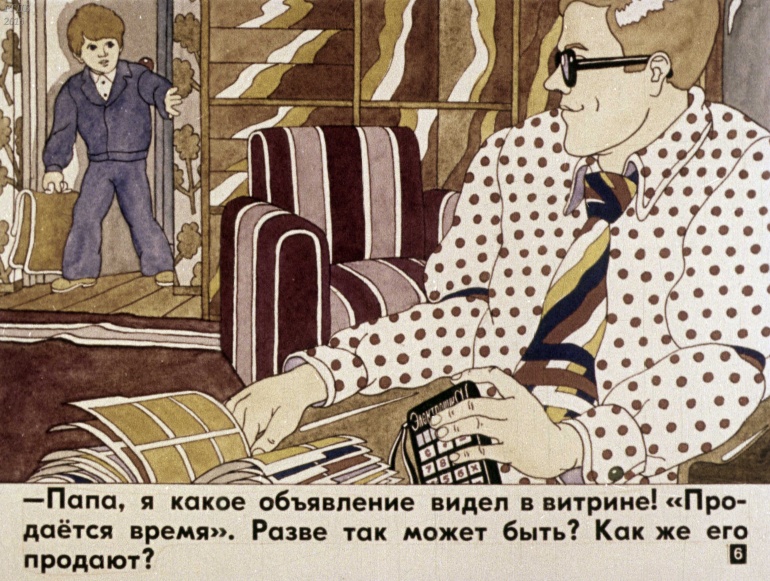 Продается время 1 Категория: ДиафильмыПросмотры: 835 Диафильм "Продается время".Студия "Диафильм" Госкино СССР, 1981 год. Д-3552-81, цветной 0-30 копеек