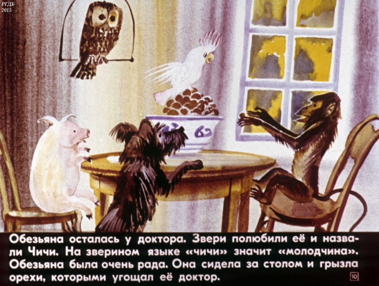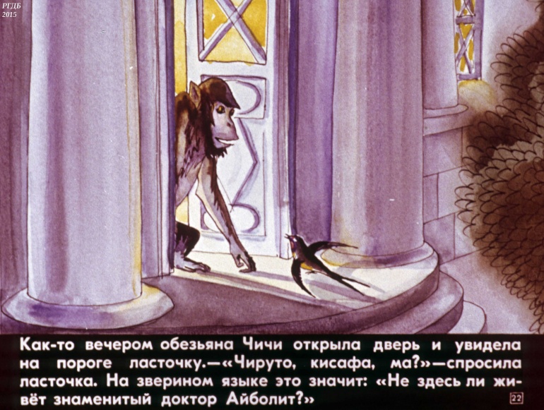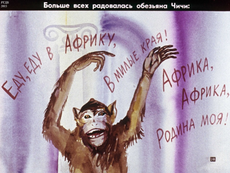 Путешествие в страну обезьян. Доктор и его звери 2 Категория: ДиафильмыПросмотры: 1 283 Диафильм "Путешествие в страну обезьян. Часть 1. Доктор и его звери". По мотивам сказки Корнея Чуковского "Доктор Айболит"Студия "Диафильм" Госкино СССР, 1979 год. Д-299-79, цветной 0-30 копеек