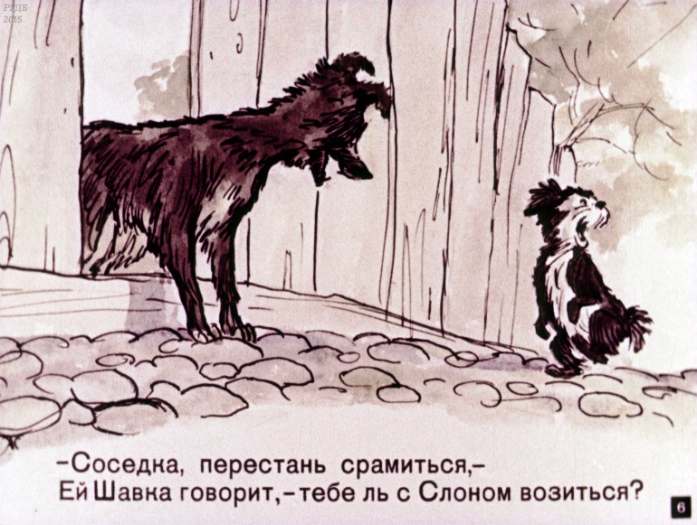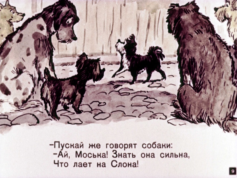 Слон и Моська 0 Категория: ДиафильмыПросмотры: 1 095 И. Крылов. Диафильм "Слон и Моська".Студия "Диафильм" Госкино СССР, 1962 год. Д-432-62, цветной 0-30 копеек