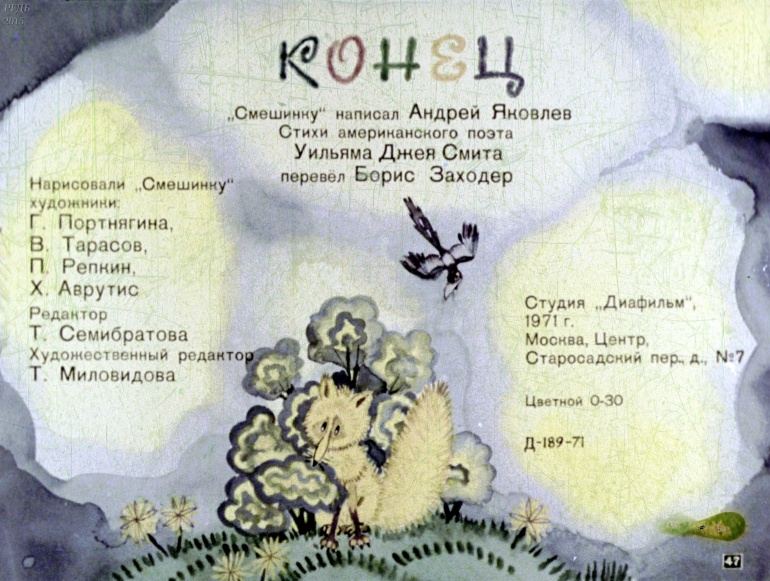 Смешинка № 10 0 Категория: ДиафильмыПросмотры: 1 097 Диафильм "Смешинка № 10".Студия "Диафильм" Госкино СССР, 1971 год. Д-189-71, цветной 0-30 копеек
