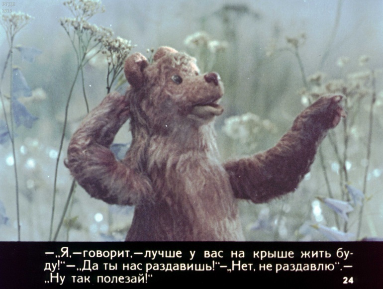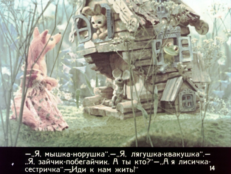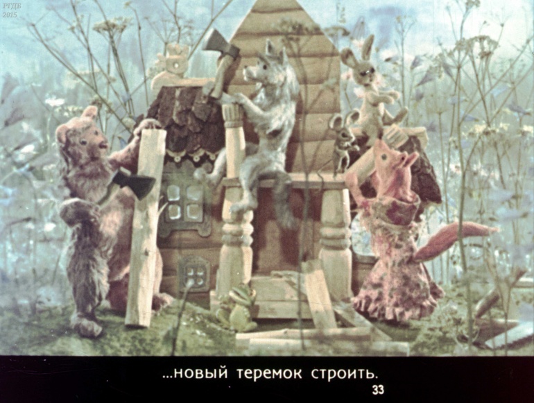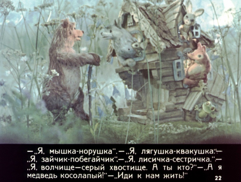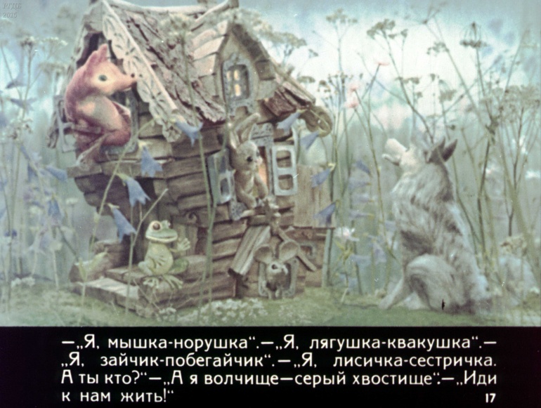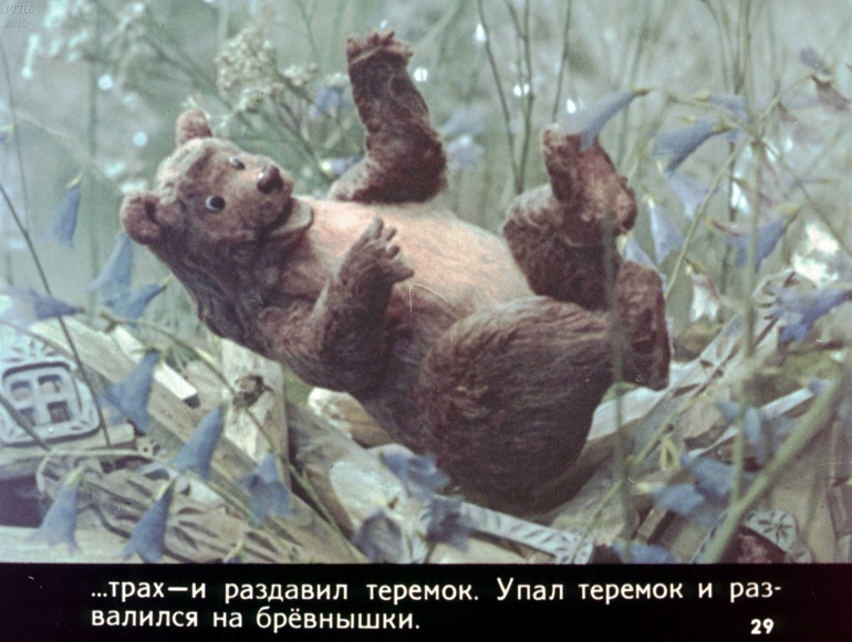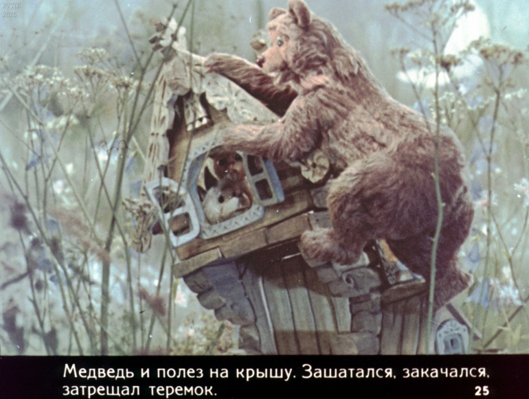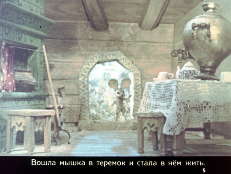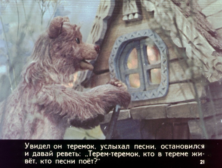 Теремок 0 Категория: ДиафильмыПросмотры: 1 098 Диафильм "Теремок". Русская народная сказкаСтудия "Диафильм" Госкино СССР, 1977 год. Д-294-77, цветной 0-30 копеек