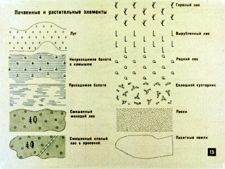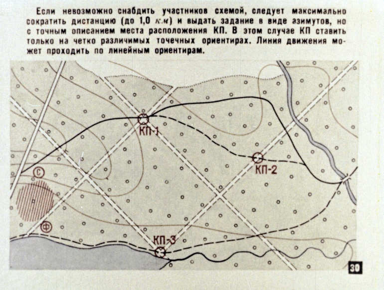 При выборе конечного ориентира и в местах поворотов следует останавливаться на линейных ориентирах (широких к фронту движения). Чем длиннее путь по азимуту, тем шире выбирать ориентир.