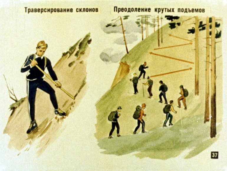 Техника движения (ходьбы), траверсирование склонов и преодоление крутых подъемов