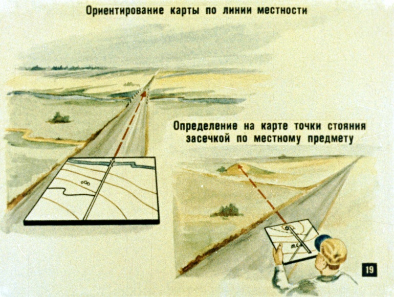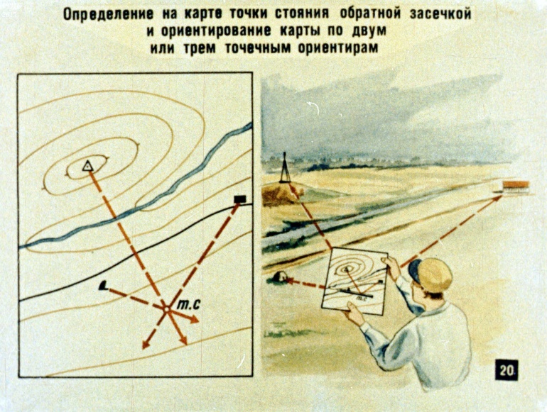 Определение на карте точки стояния обратной засечкой и ориентирование карты по двум или трем точечным ориентирам.