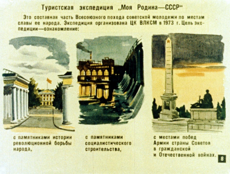 Это составная часть Всесоюзного похода советской молодежи по местам славы ее народа. Экспедиция организована ЦК ВЛКСМ в 1973 г. Цель экспедиции—ознакомление: