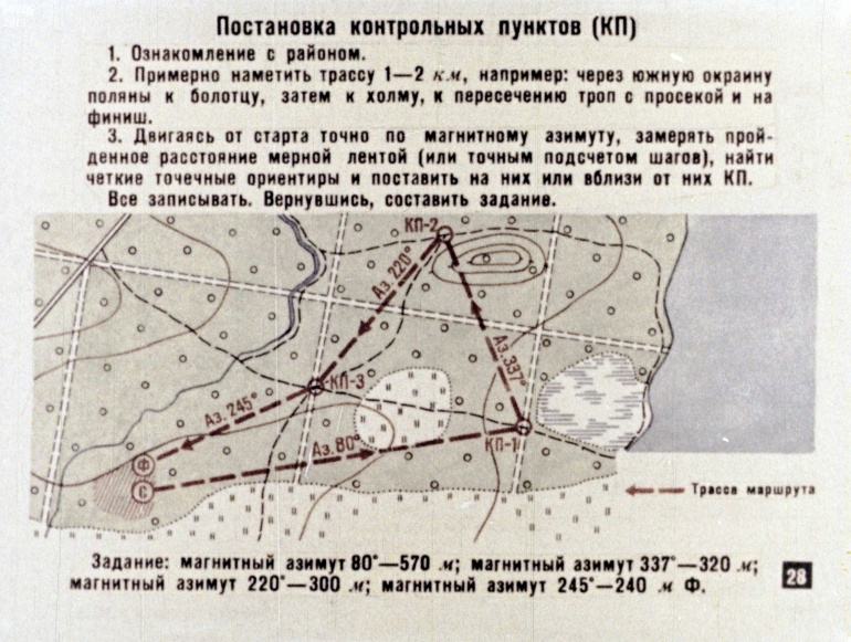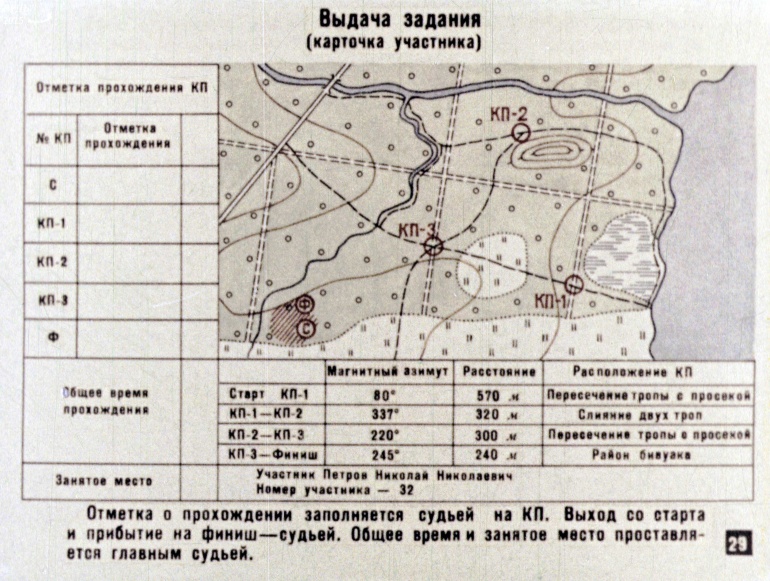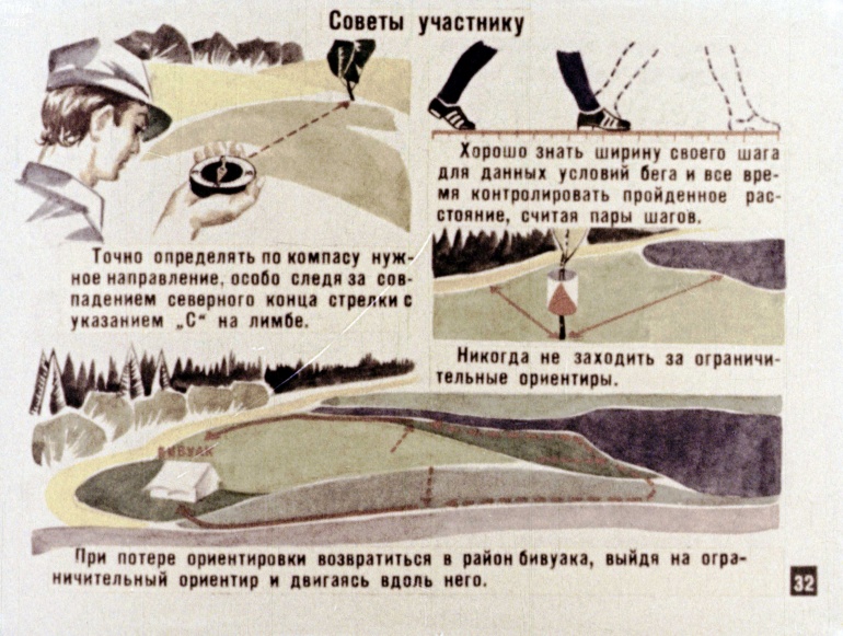 На месте бивуака проводятся соревнования по ориентированию на местности (закрытый маршрут) на 1—2 км с 2—3 передвижениями по заданным азимутам.