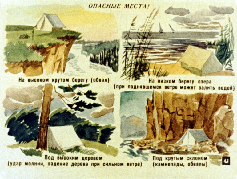 - На низком берегу озера (при поднявшемся ветре может залить водой)