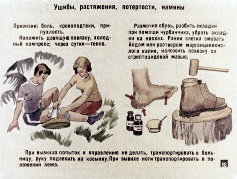 Размочив обувь, разбить складки при помощи чурбанчика, убрать складки на носках. Ранки слегка смазать йодом или раствором марганцевокислого калия, наложить повязку со стрептоцидовой мазью.