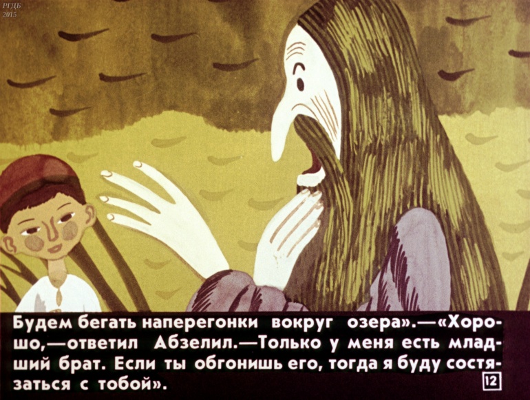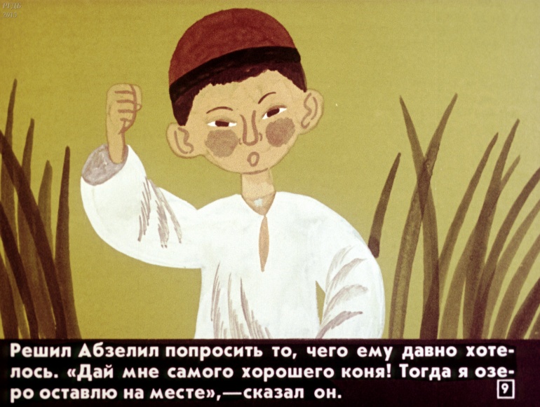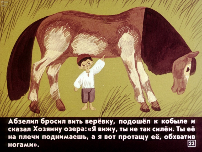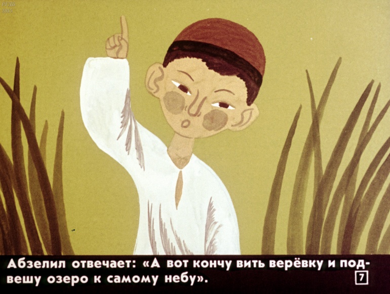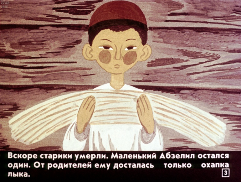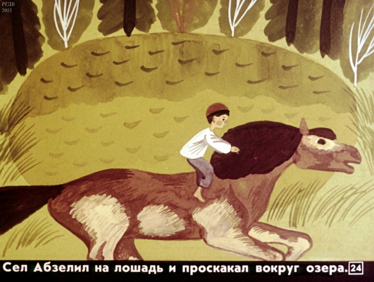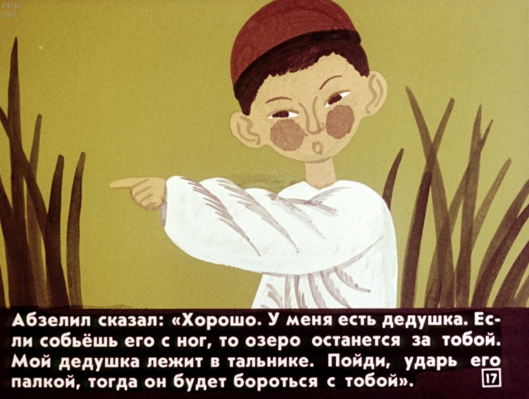 Абзелил 1 Категория: ДиафильмыПросмотры: 1 287 Диафильм "Абзелил". Башкирская народная сказка Студия "Диафильм" Госкино СССР, 1987 год. Д-159-87, цветной 0-30 копеек