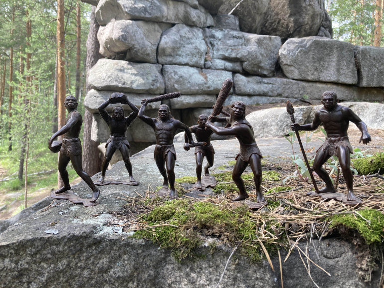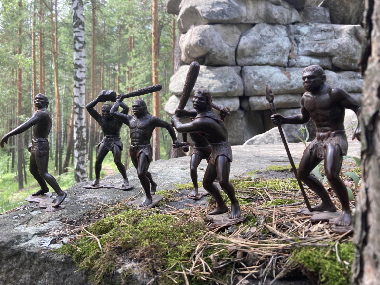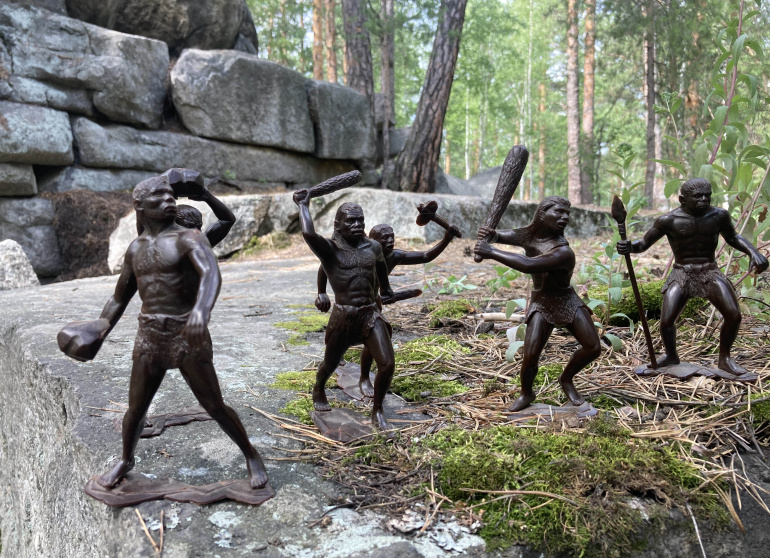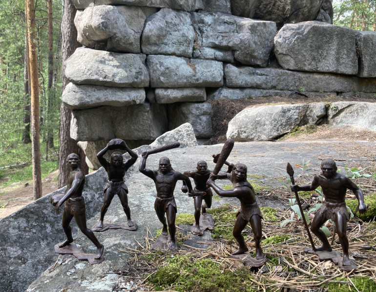 Неандерталец с камнем