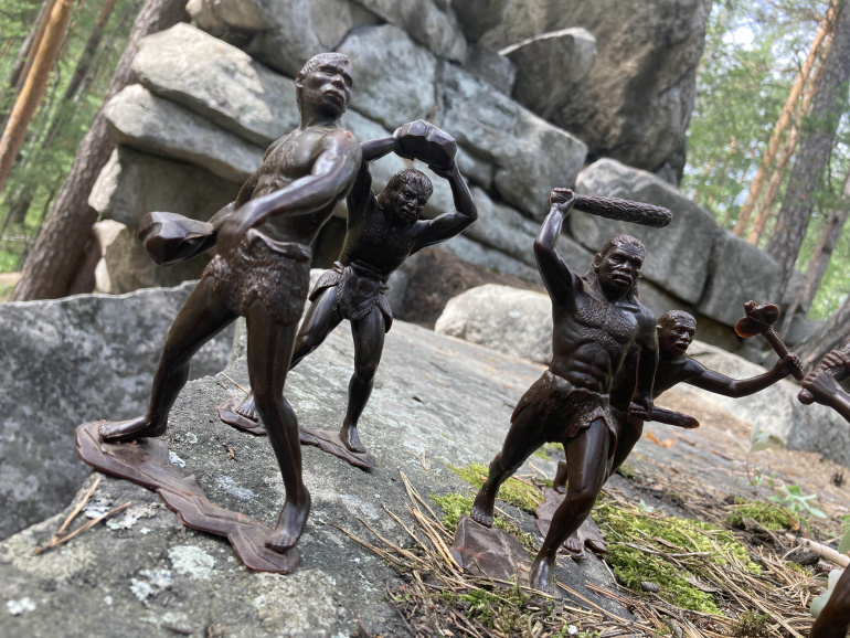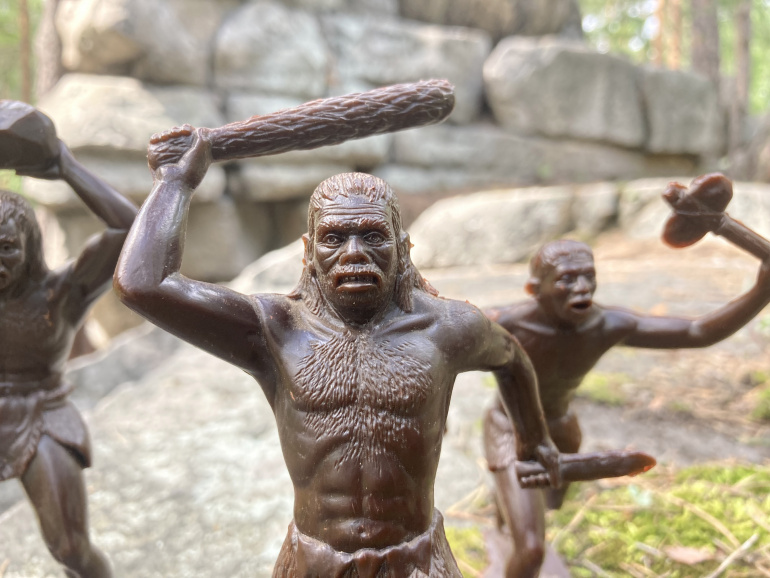 Легендарный набор советских больших солдатиков "Пещерные люди", более известный как "Неандертальцы" состоял из шести солдатиков и был очень желаемой игрушкой всех мальчишек позднего Советского Союза. Зачастую в коллекциях мальчишек была пара-другая таких древних людей, полной коллекции практически не было ни у кого. Выпускаться такой набор в промышленных масштабах в Советском Союзе стал в 1978 году на Донецком Заводе Игрушек (ДЗИ). Солдатики изготавливались на приобретенных пресс-формах от американской компании Louis Marx and Company. К слову, оригинальное название набора звучит как "Cavemen" и первая партия этих ребят из Каменного века была выпущена еще в 1964 году, так что оборудование к нам пришло не новое, хотя именно в случае с этим набором пресс-формы сохранились неплохо...