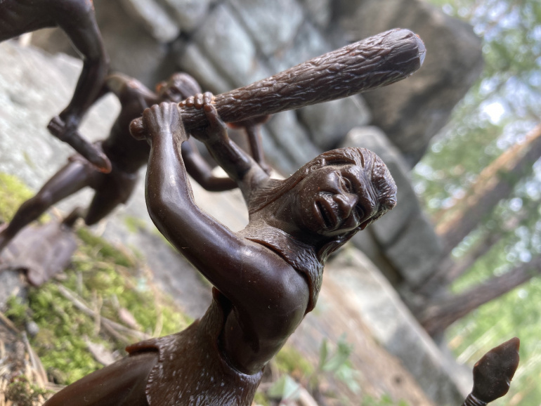 Неандерталец с камнем над головой