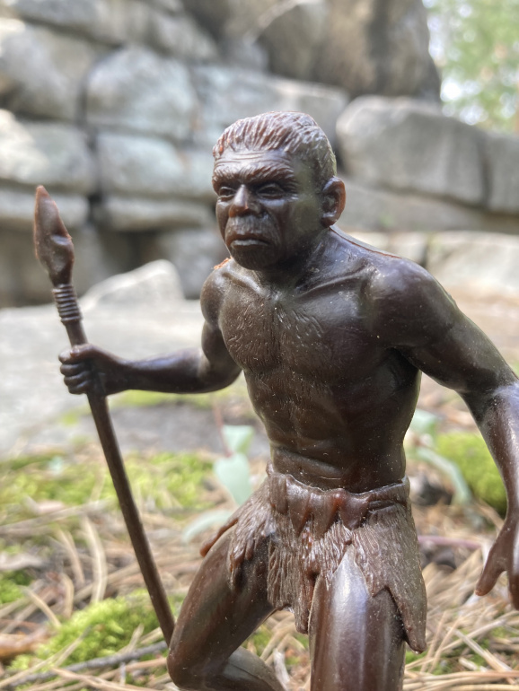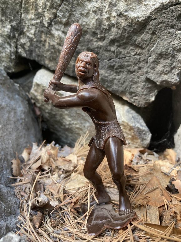 Порядковый номер солдатика в каталоге - BL8-1-6. Пожалуй, самая известная фигура набора. К слову, неандерталец в этой узнаваемой позе есть на иллюстрации в Детской Советской Энциклопедии (ДСЭ) в томе "История". Высота миниатюры - примерно 140 миллиметров.