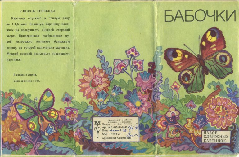 Московский комбинат игрушек "Горизонт". Набор сдвижных картинок "Бабочки". Художники Сафроновы. ![]()