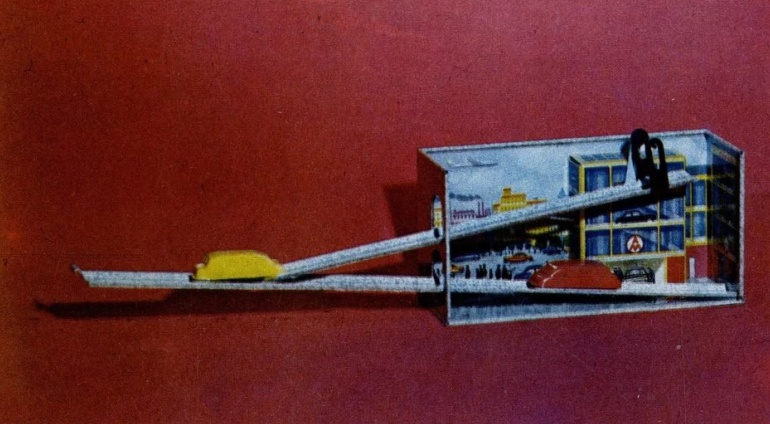 Игрушка заводная металлическая с двумя машинами из полистирола. Размеры (при выдвинутой колее): 247 X 67 X 85 мм. Артикул ЛГ 085-2502