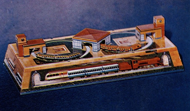 Цветной красочный каталог с фотографиями игрушек Ленинградского завода металлоизделий примерно 1970-х годов с описанием.