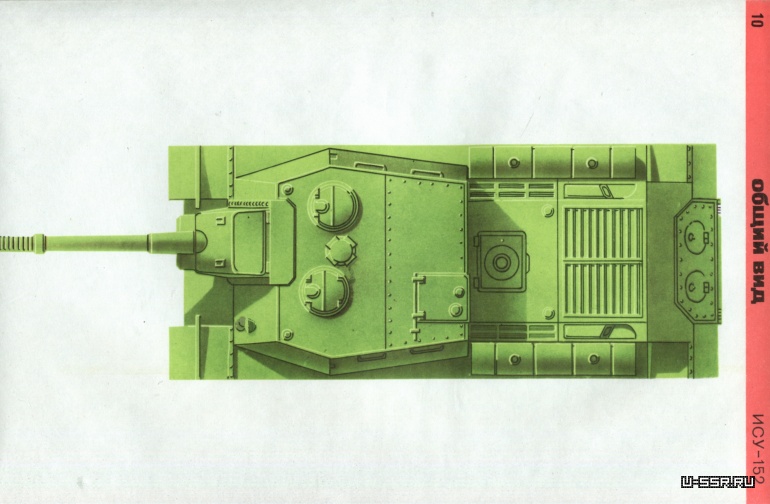 Самохідні установки з’явились у нас уже в 1934 році. В 1942— 1944 роках почалось виробництво важких САУ. САУ мають великі переваги перед артилерією: широкий маневр на полі бою, швидкохідність, захищеність екіпажа, здатність негайно відкрити вогонь. ІСУ-152 використовувались в наступі і обороні, при штурмі дотів, укріплень для підтримки піхоти і в танкових атаках. Потужна гармата ІСУ-152 мала снайперську точність. Снаряди САУ буквально прошивали броню „Тигрів” і „Пантер”. Вага цієї машини 46 тонн. Броня 30—120 мм. Озброєння: 152-міліметрова гармата, зенітний кулемет ДШК. Потужність двигуна — 520 к. с., швидкість — 34 км год. Обслуговувало САУ 5 чоловік.